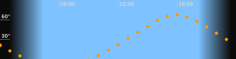 | Höchster Stand (Kulmination) | 17:55 Uhr (h = 67,6°) |