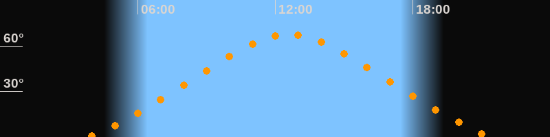 Höchster Stand (Kulmination)12:37 Uhr (h = 67,6°)