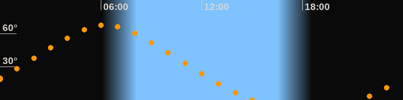 | Höchster Stand (Kulmination) | 06:15 Uhr (h = 67,6°) |