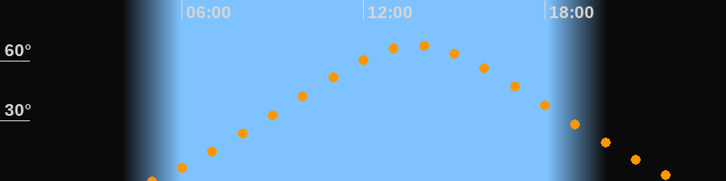 | Höchster Stand (Kulmination) | 13:45 Uhr (h = 67,6°) |
