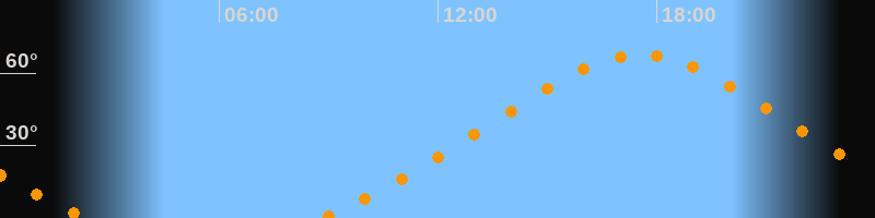 | Höchster Stand (Kulmination) | 17:34 Uhr (h = 67,6°) |