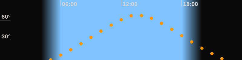 | Höchster Stand (Kulmination) | 13:38 Uhr (h = 67,6°) |