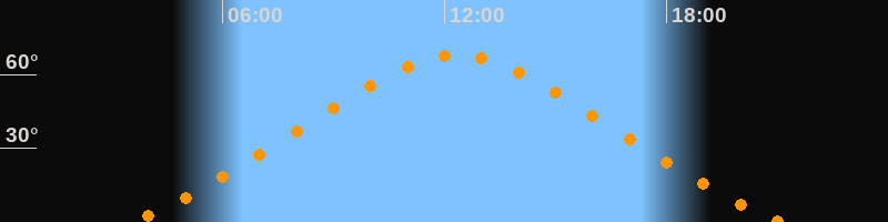 | Höchster Stand (Kulmination) | 12:19 Uhr (h = 67,6°) |