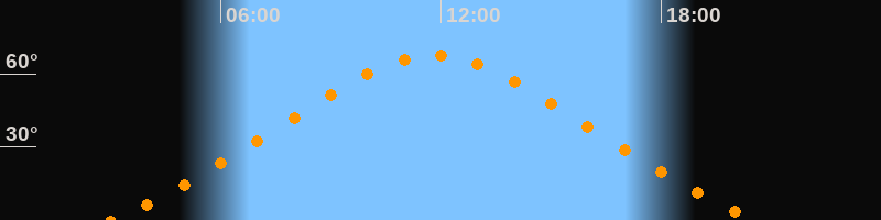 | Höchster Stand (Kulmination) | 11:48 Uhr (h = 67,6°) |
