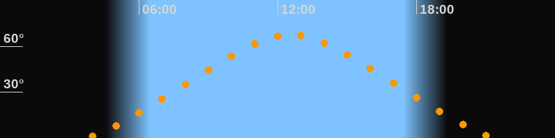 | Höchster Stand (Kulmination) | 12:33 Uhr (h = 67,6°) |