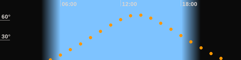 | Höchster Stand (Kulmination) | 13:40 Uhr (h = 67,6°) |