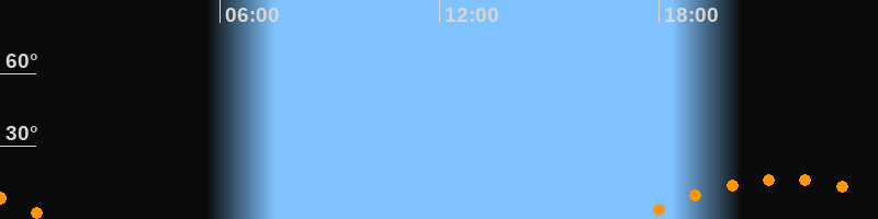 | Aufgang | 17:23 Uhr im Südosten (αAz = 126,9°) |