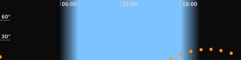 | Aufgang | 16:41 Uhr im Südosten (αAz = 126,9°) |