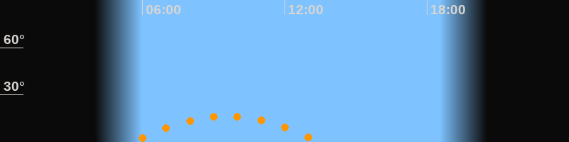 | Höchster Stand (Kulmination) | 09:31 Uhr (h = 16,5°) |