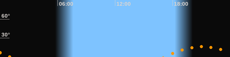 | Untergang | 01:05 Uhr im Südwesten (αAz = 233,1°) |