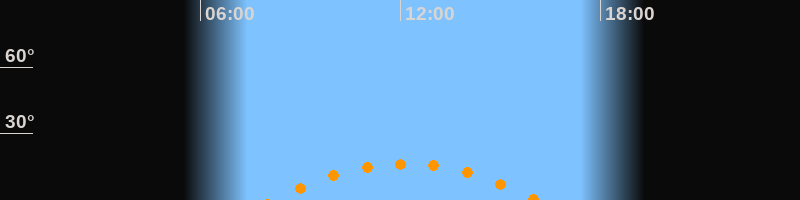 | Höchster Stand (Kulmination) | 12:09 Uhr (h = 16,5°) |