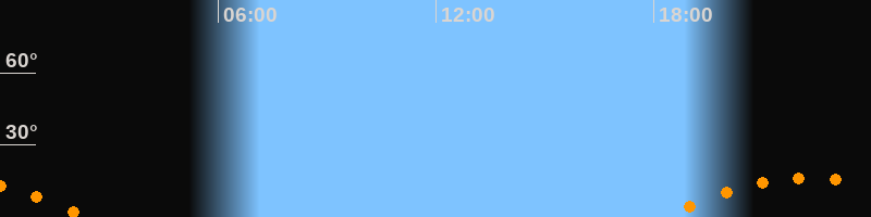 | Aufgang | 18:17 Uhr im Südosten (αAz = 126,9°) |