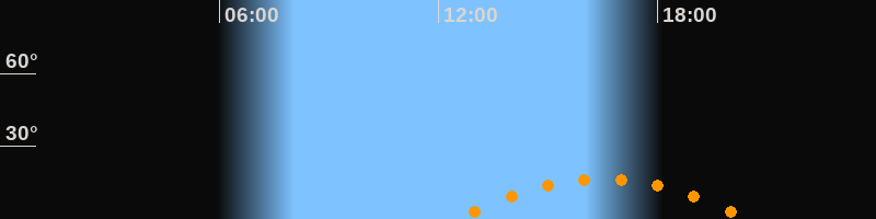 | Höchster Stand (Kulmination) | 16:30 Uhr (h = 16,5°) |