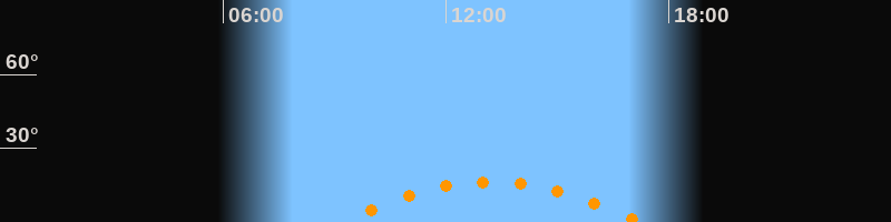 | Höchster Stand (Kulmination) | 13:13 Uhr (h = 16,5°) |
