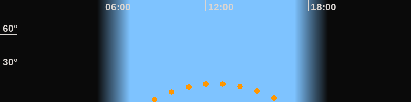 | Höchster Stand (Kulmination) | 12:35 Uhr (h = 16,5°) |