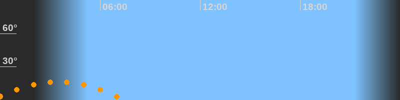 | Untergang | 07:29 Uhr im Südwesten (αAz = 233,1°) |