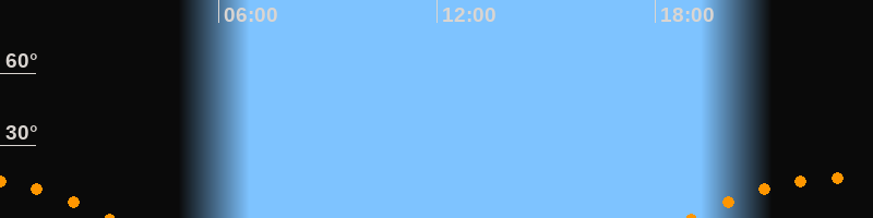 | Aufgang | 18:58 Uhr im Südosten (αAz = 126,9°) |