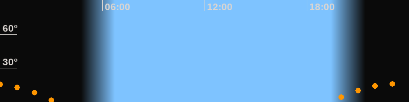 | Untergang | 03:20 Uhr im Südwesten (αAz = 233,1°) |
