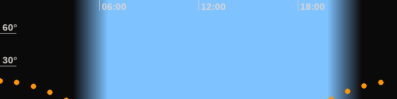| Untergang | 03:58 Uhr im Südwesten (αAz = 233,1°) |