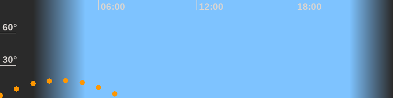 | Aufgang | 23:34 Uhr im Südosten (αAz = 126,9°) |