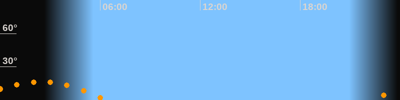 | Untergang | 06:23 Uhr im Südwesten (αAz = 233,1°) |
