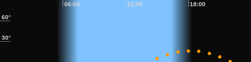 | Höchster Stand (Kulmination) | 18:10 Uhr (h = 16,5°) |