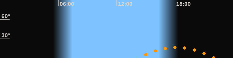 | Höchster Stand (Kulmination) | 18:08 Uhr (h = 16,5°) |