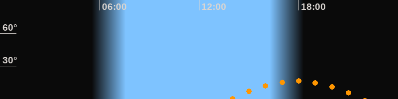 | Aufgang | 13:53 Uhr im Südosten (αAz = 126,9°) |