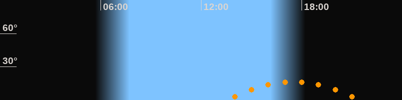 | Höchster Stand (Kulmination) | 17:29 Uhr (h = 16,5°) |