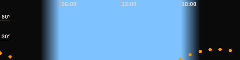 | Untergang | 01:44 Uhr im Südwesten (αAz = 233,1°) |