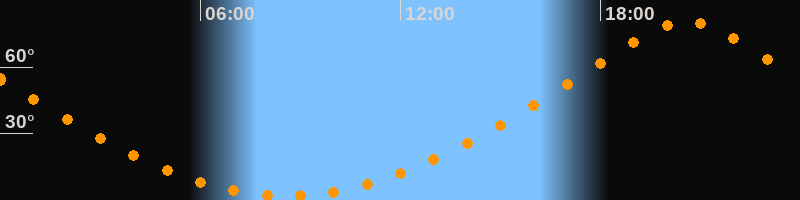 Höchster Stand (Kulmination)20:36 Uhr (h = 80,5°)