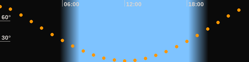 Höchster Stand (Kulmination)00:02 Uhr (h = 80,5°)