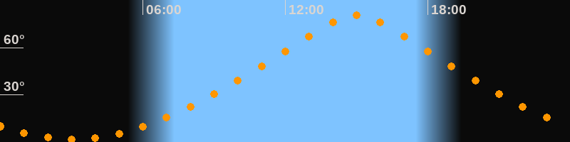 Höchster Stand (Kulmination)15:00 Uhr (h = 80,5°)
