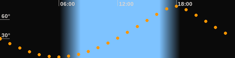 Höchster Stand (Kulmination)17:55 Uhr (h = 80,5°)