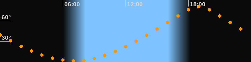 Höchster Stand (Kulmination)18:59 Uhr (h = 80,5°)