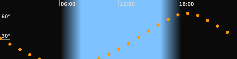 Höchster Stand (Kulmination)18:53 Uhr (h = 69,9°)