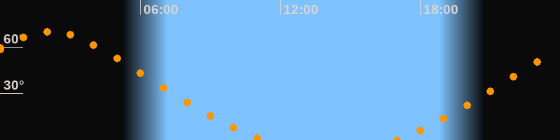 Höchster Stand (Kulmination)02:09 Uhr (h = 69,9°)