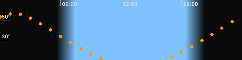 Höchster Stand (Kulmination)01:18 Uhr (h = 69,9°)