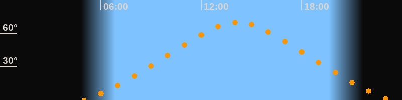 Höchster Stand (Kulmination)14:09 Uhr (h = 69,9°)