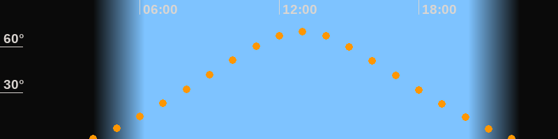 Höchster Stand (Kulmination)12:59 Uhr (h = 69,9°)