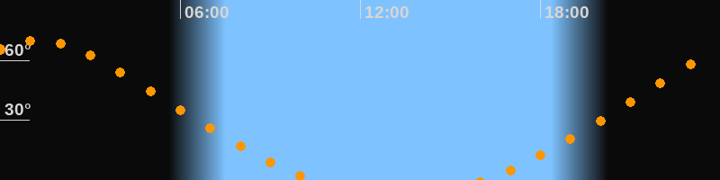 Höchster Stand (Kulmination)01:15 Uhr (h = 69,9°)