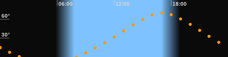 Höchster Stand (Kulmination)17:02 Uhr (h = 69,9°)