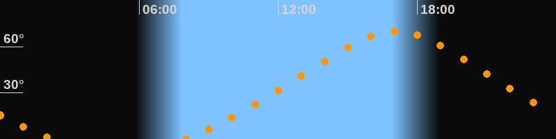 Höchster Stand (Kulmination)17:04 Uhr (h = 69,9°)