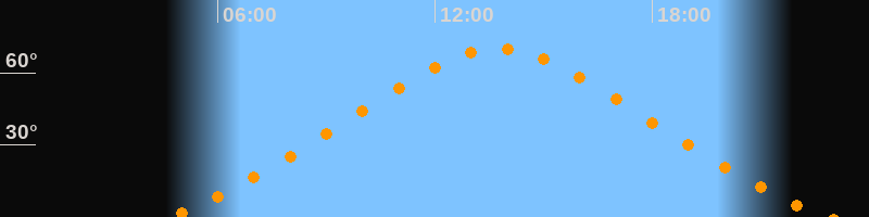 Höchster Stand (Kulmination)13:45 Uhr (h = 69,9°)