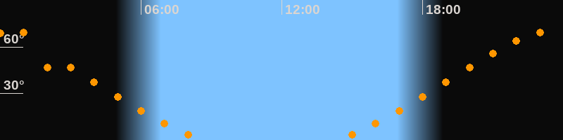 Höchster Stand (Kulmination)23:27 Uhr (h = 69,9°)