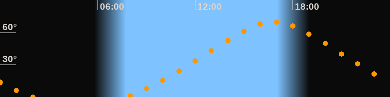 Höchster Stand (Kulmination)16:50 Uhr (h = 69,9°)