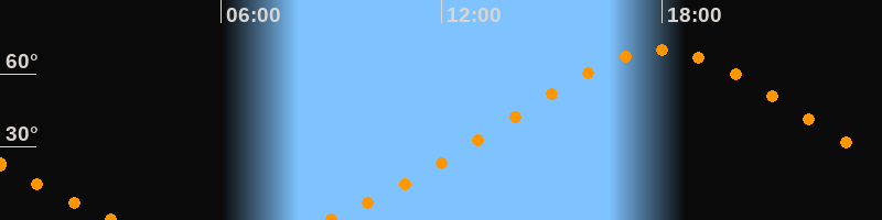 Höchster Stand (Kulmination)17:57 Uhr (h = 69,9°)