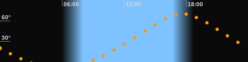 Höchster Stand (Kulmination)17:38 Uhr (h = 69,9°)