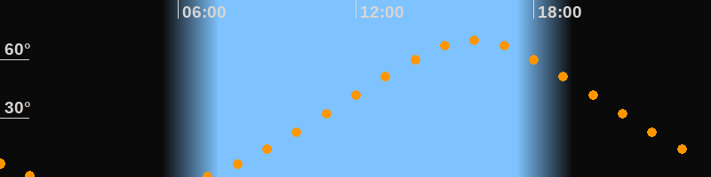 Höchster Stand (Kulmination)16:00 Uhr (h = 69,9°)