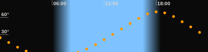 Höchster Stand (Kulmination)18:11 Uhr (h = 69,9°)